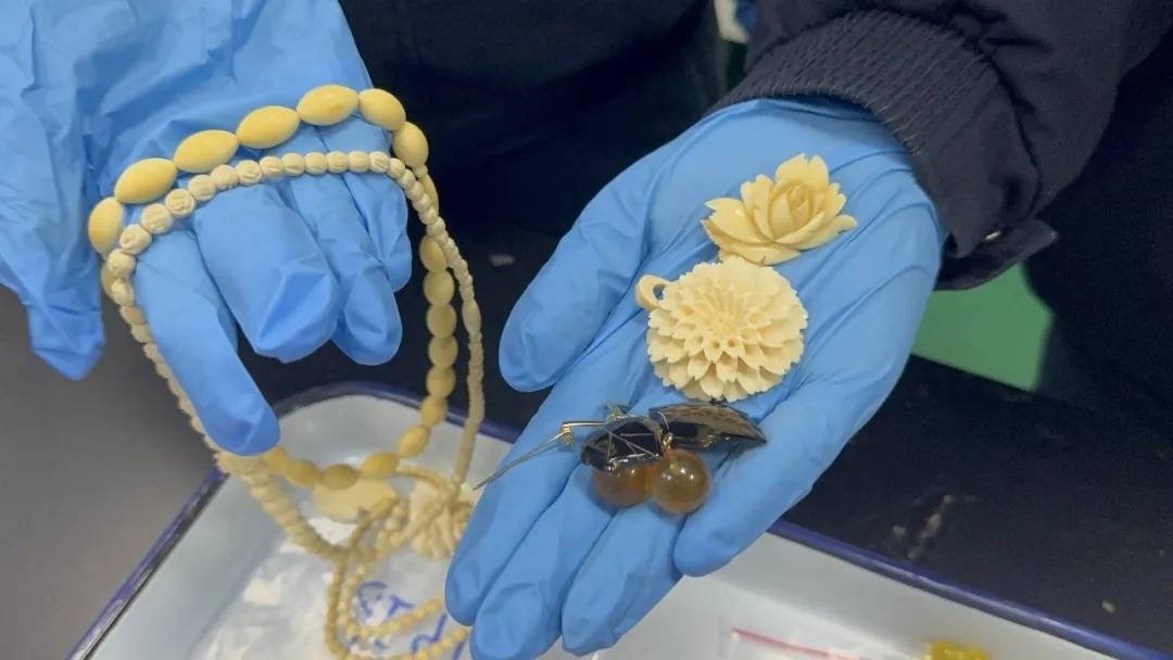 经送技术机构鉴定,确认共有23件饰品为濒危动物制品,总重112克。其中,11件为象科现代象的象牙制品,12件为海龟科玳瑁背甲壳制品。